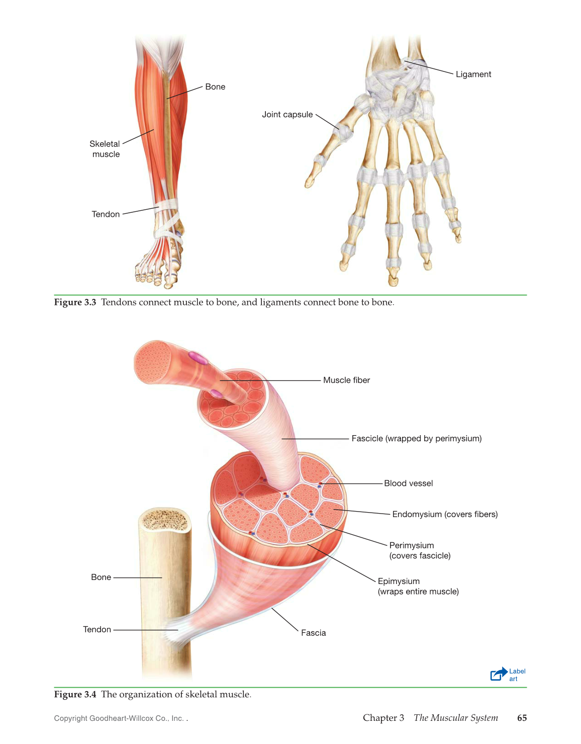 Figure 3.3 Tendons connect muscle to bone, and ligaments connect bone to bone.